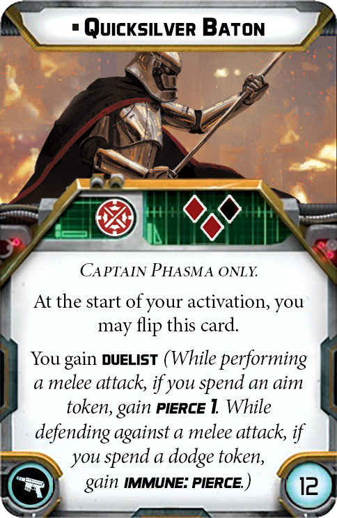 It doesn’t end there, Captain Phasma is not afraid to get up close and personal. For melee combat, she prefers her Quicksilver Baton, making her just as dangerous as she is with a blaster. If additional enemies needs to be eliminated, Phasma can rely on her personalized SE-44 Blaster Pistol for efficiency. This Captain is loyal to the First Order and will stop at nothing to take down the resistance. She does not tolerate traitors, and if she happens to stumble upon one, she will line up her disciplined troopers and say…”On my command”.